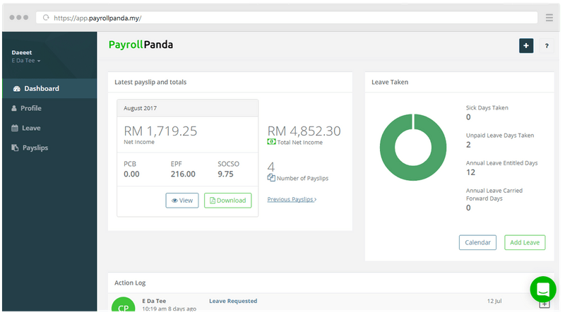 PayrollPanda membolehkan anda menguruskan penggajian dan cuti pekerja dengan dalam satu sistem yang mudah. Melalui PayrollPanda, anda dapat meningkatkan produktiviti dengan sistem automasi penggajian yang tepat untuk menjimatkan masa. Sistem yang selamat dan menggunakan SSL encryption ini boleh di akses dari mana-mana desktop serta ia patuh berkanun dimana semua pengiraan dan pemotongan bagi badan berkanun mengikut keperluan undang-undang.