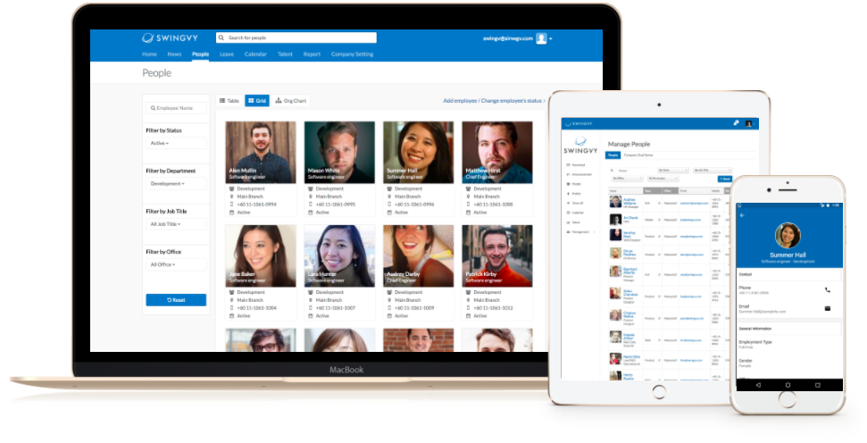 Satu lagi HRMS semua dalam satu yang boleh digunakan tidak kira syarikat kecil atau sederhana, Swingvy adalah HRMS yang mudah dan intuitif. Perisian ini lebih tertumpu kepada pengurusan cuti pekerja dimana ia membolehkan untuk menganalisa, mengurus dan meluluskan cuti serta ketidakhadiran secara berpusat. Sehunbungan itu, dasar-dasar syarikat dapat ditetapkan dan dikuatkuasakan dengan mudah.