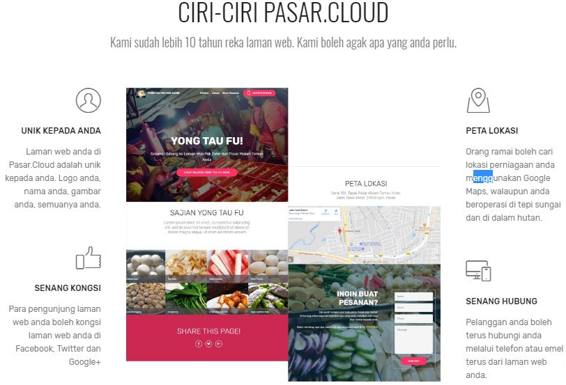 Pasar.Cloud membolehkan seseorang peniaga meluaskan pasaran masing-masing secara online dengan menyebarkan URL laman web mereka di media sosial, Google, Whatsapp dan lain-lain saluran. Ia membolehkan seseorang peniaga kutip bayaran dari para pelanggan menggunakan kemudahan pembayaran online senangPay, yang boleh terima pembayaran kad kredit/debit dan perbankan Internet (FPX); dan Pasar.Cloud tidak membebankan dari segi kewangan, hanya RM25 sebulan!