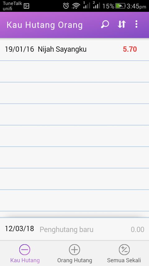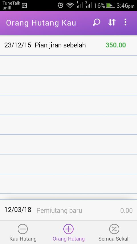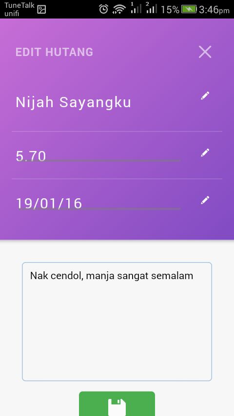 Anda juga boleh edit maklumat hutang dengan mudah, dengan hanya menekan baris maklumat tersebut.
