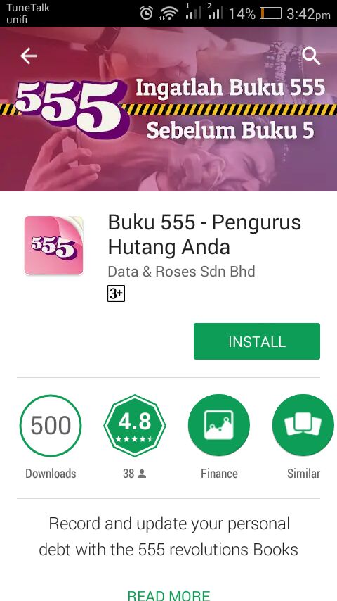 Walaupun ia berdasarkan buku 555 yang sebenar, fungsi utama aplikasi ini lebih kepada buku hutang. Ia tidak sesuai digunakan untuk membuat catatan atau nota ringkas. Mungkin ia boleh digunakan sebagai senarai membeli-belah tetapi itu atas kretiviti anda.