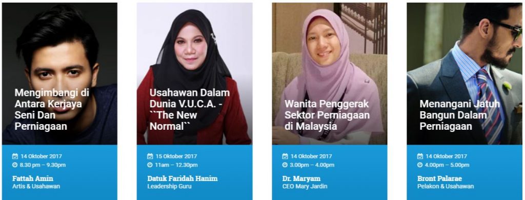 Acara ini menampilkan 30 penceramah dan panelis, 27 Master Class, 28, Pocket Talks, 27 Program Owners, 40 Agensi Kerajaan, dan 70 pempamer dari Johor disamping 2 Boot Camp dan 5 usahawan selebriti.