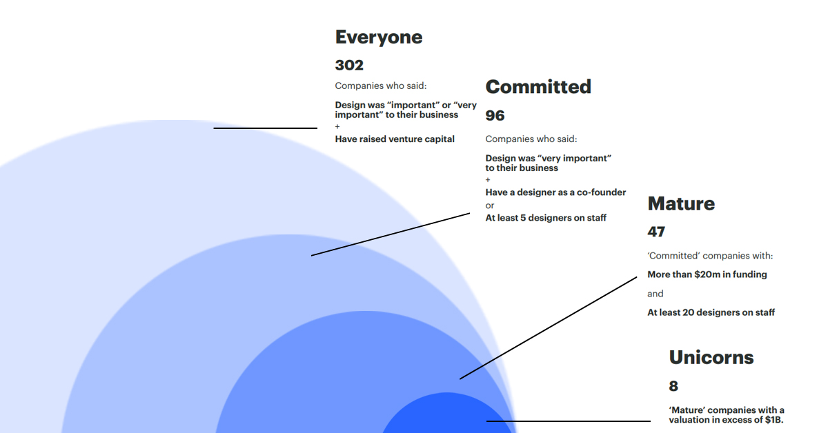 47 syarikat yang dikategorikan sebagai Design-Mature, didapati melabur dalam rekabentuk sebagai tiang dalam strategi perkembangan syarikat. Syarikat-syarikat ini mempunyai dana melebihi $20 juta dengan minimum 20 perekabentuk sebagai kakitangan. Daripada 47 syarikat tersebut, 8 adalah syarikat bertaraf Unicorn dengan penilaian melebihi $1Billion.
