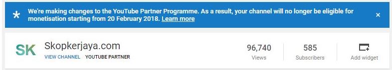Syarat baru ini bukan sahaja dilaksanakan terhadap permohon baru yang ingin menyertai Youtube Partner Program, malah channel lama yang tidak menepati syarat tersebut juga terkesan seperti channel dibawah ini mulai 20 Februari 2018.