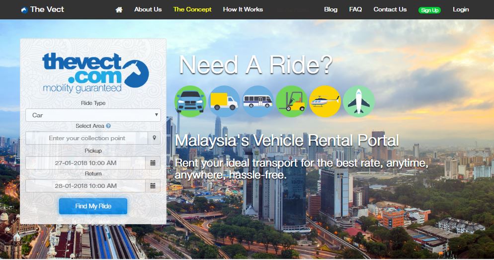 Secara umumnya TheVect adalah satu-satunya platform di Malaysia yang kami bina bertujuan sebagai carian khusus perkhidmatan kesemua jenis kenderaan sewa merangkumi kesemua jenis kenderaan di darat, udara, dan air. Jika anda lihat Carlist ( jual beli kereta), Agoda (perhotelan), bagaimana dengan satu platform yang ingin anda lawati untuk mencari kesemua jenis kenderaan sewa? Tiada satu platform yang terlintas di fikiran anda bukan? Di sini kami melihat potensi TheVect.