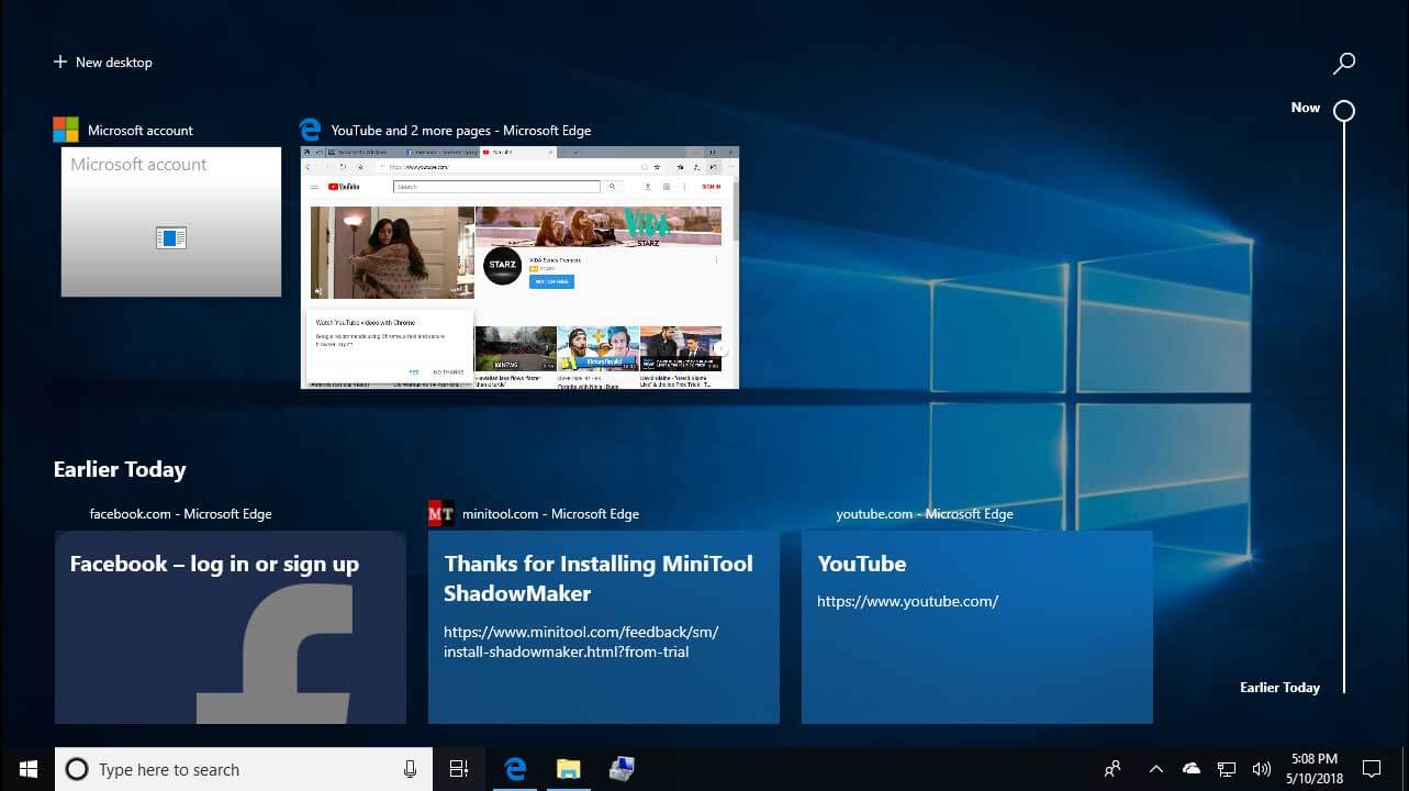 Serupa seperti Time Machine yang digunakan oleh Apple, Timeline membolehkan anda skroll kembali ke masa lepas untuk mencari laman-laman yang telah anda layari, fail yang telah dibuka, aplikasi yang telah digunakan dan sebagainya. Untuk akses ciri ini, tekan kekunci “Win + Tab” secara serentak atau tekan “Task View” pada taskbar. Timeline akan memaparkan peristiwa yang telah berlaku dalam masa 30 hari. Anda boleh tetapkan paparan mengikut hari atau masa.